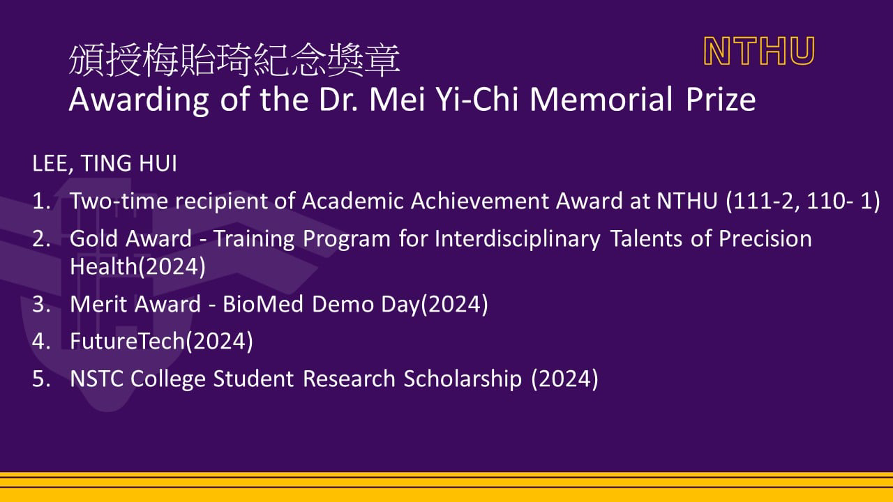 | 生命科學暨醫學院 | 生命科學系 | 李庭慧 |
