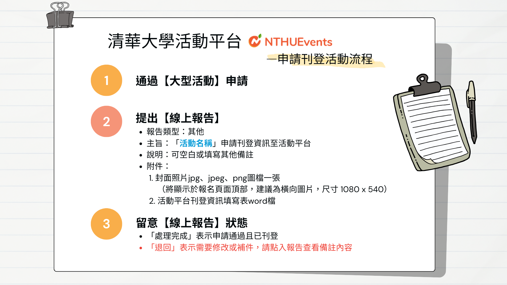 三、活動平台刊登資訊填寫表:請下載下面附件檔,填妥後附在線上報告連同圖檔一起上傳。